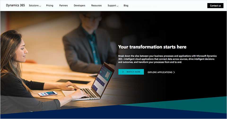 这种传统的照片形式常见于一些大公司,例如微软的CRM产品Microsoft Dynamics 365: