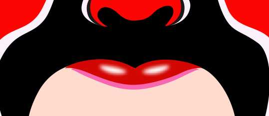 12、绘制嘴唇,用“贝塞尔工具”绘制嘴唇形状,用“形状工具”进行细节调整。复制出一个填充不同颜色,摆放位置,如图所示。