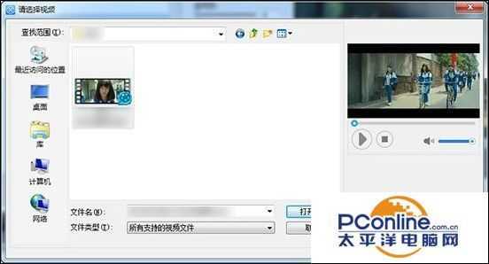 2、在弹出的文件选择框中,对要添加的视频进行预览后,导入即可。
